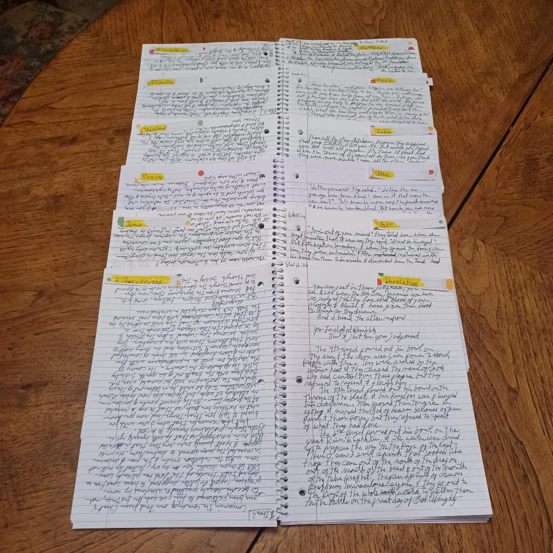 Each notebook has one of 6 major New Testament books;