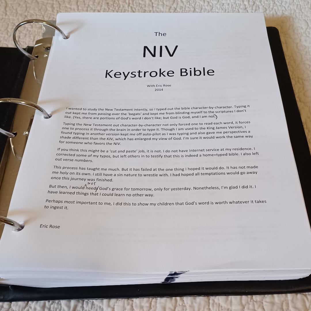 In 2014, I typed out the New Testament word-for-word, chapter-for-chapter, book-for-book,