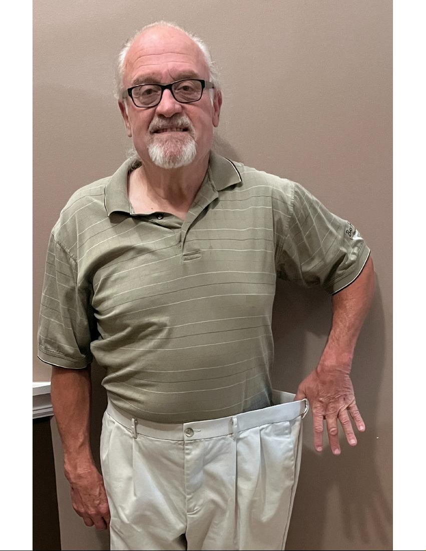 In July, 2017, at my heaviest, I wore jeans with a 40" waist that I could not fasten over my belly.