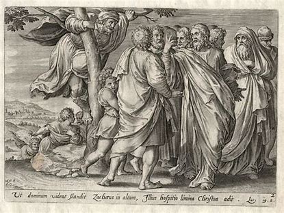 Jesus looked up and said, "Zacchaeus come down, out of the sycamore tree."